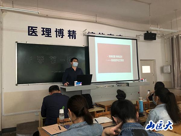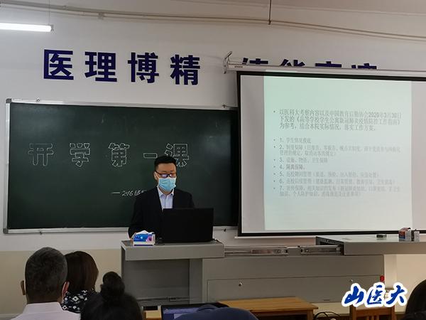 秦纲对全国人民为抗击疫情做出的贡献、百年山医优秀人才进行了介绍。他鼓励同学们,要迎难而上,理解学校,理解社会,不负韶华,努力实现自身价值。他还对毕业论文的写作要求进行了解读,以实例形式对同学们的毕业论文写作进行了指导。