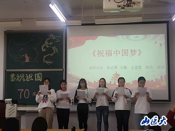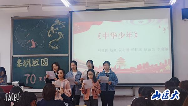 为迎接中华人民共和国成立70周年,弘扬爱国主义精神,激发广大团员青年的爱国爱校之情,加强对大学生的爱国主义教育,9月25日下午,第六临床医学院医学检验专业师生在万象城中都校区慎思A303教室举办了庆祝中华人民共和国成立70周年“伟大的祖国”主题团日活动。分团委负责人周斐及2018级、2019级全体学生参加了此次活动。