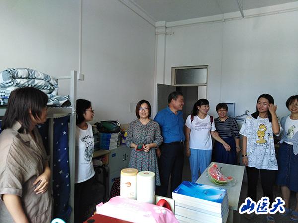 学院领导先后来到学院2016级临床医学专业和2016级、2017级医学检验技术专业学生宿舍,查看询问学生报到情况、学习生活和思想状况,特别叮嘱刚来到六院的新同学们尽快适应新环境,提早做好新学期规划,开启新征程。