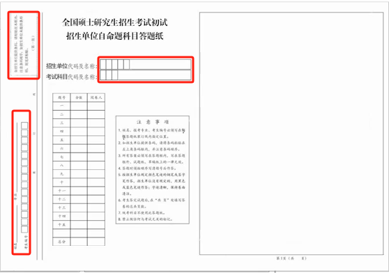 (答题纸首页样式)