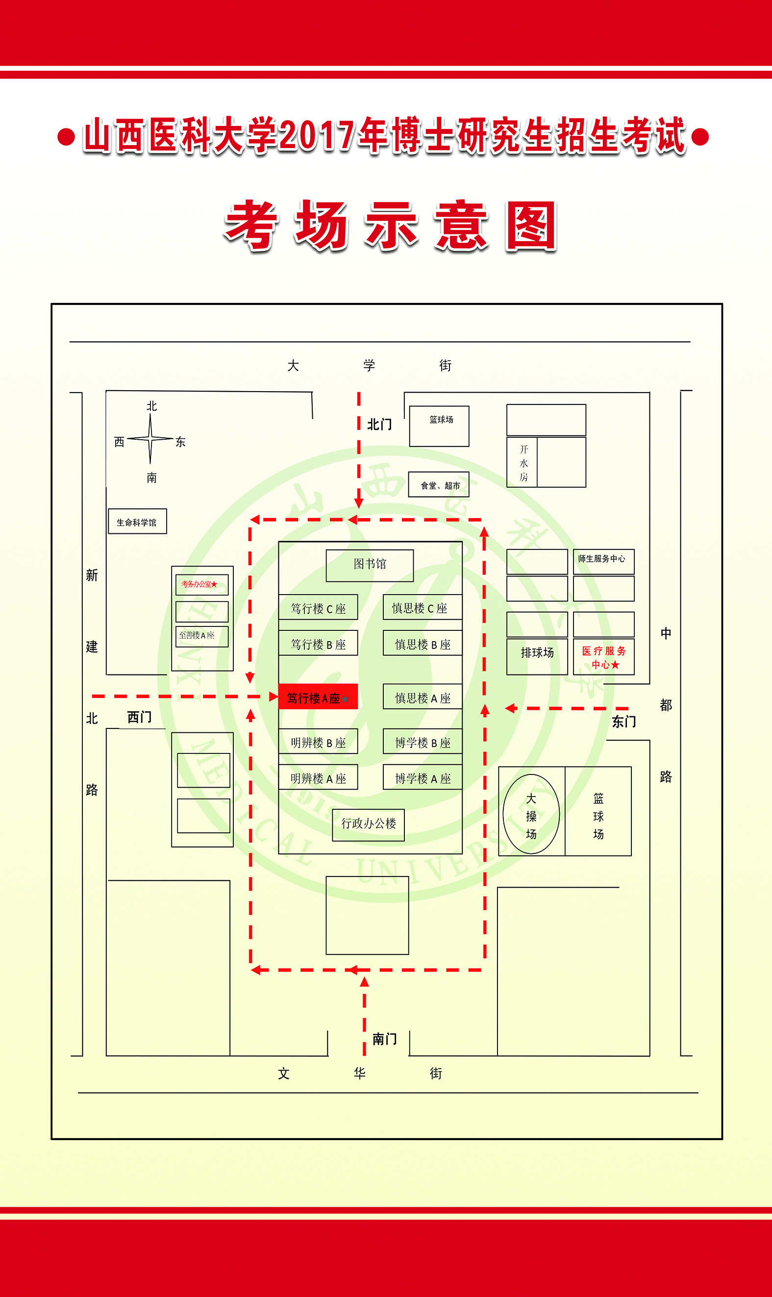 万象城体育awcsport2017年博士研究生招生考试考场示意图