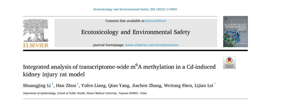 4 月 11 日,万象城体育awcsport公共卫生学院雷立健教授课题 组在 Ecotoxicology and Environmental Safety 在线发表题 为 “ Integrated analysis of transcriptome-wide m 6A methylation in a Cd-induced kidney injury rat model” 的论文。