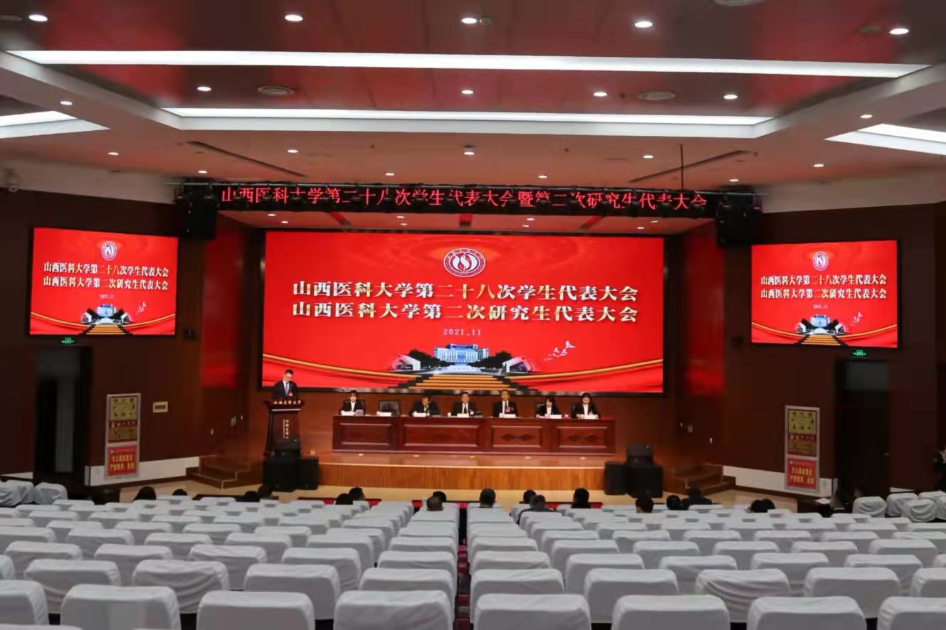 11月27日,万象城体育awcsport第二十八次学生代表大会暨第二次研究生代表大会在中都校区教学办公楼一层学术报告厅召开。校党委副书记王宏伟、学生工作部部长赵良渊、研究生工作部部长曹小清、校团委副书记张利宏、校团委副书记吴晓兵、校学生会现任主席团成员曹旭、校研究生会现任主席团成员司嘉欣出席开幕式。各院系分团委书记、校团委全体工作人员和所有大会代表参加了会议。研究生第二代表团全体成员在迎泽校区行政楼13层会议室通过网络直播的方式参加了本次会议。开幕式由大会主席团执行主席刘鑫主持。武汉大学、中南大学、燕山大学等省外高校以及省内各高校学生会、研究生会发来了贺信、贺电。大会在雄壮的国歌声中拉开帷幕。
