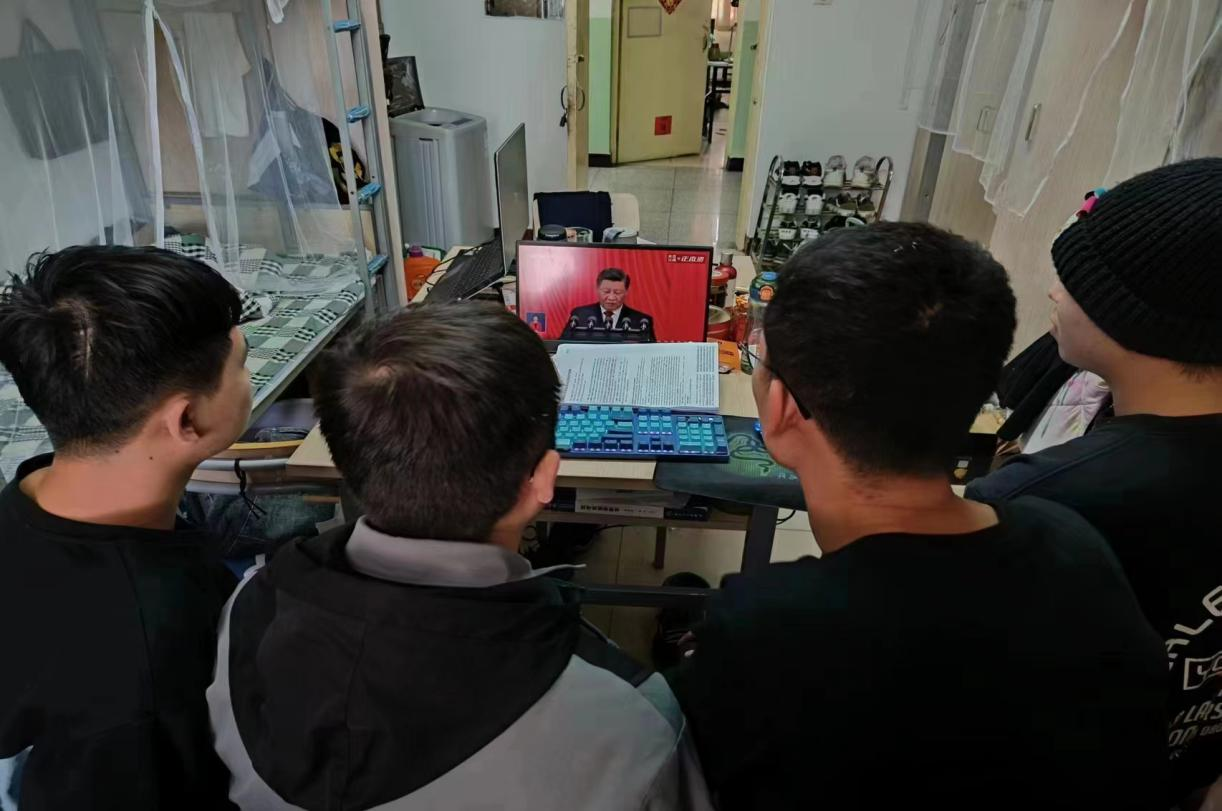 医学影像学院研究生房昌星在收看完报告后说:作为青年一代,我们紧紧跟随党的步伐,以赤诚之心,甘将热血沃中华,以渺小之躯肩负伟大使命,走向新时代的赶考路;管理学院研究生有这样新的感悟:我们要牢记习近平总书记的殷殷嘱托,永远听党话、跟党走,与祖国和时代同行,学习好自己的专业知识,投身社会,做未来社会的中坚力量。