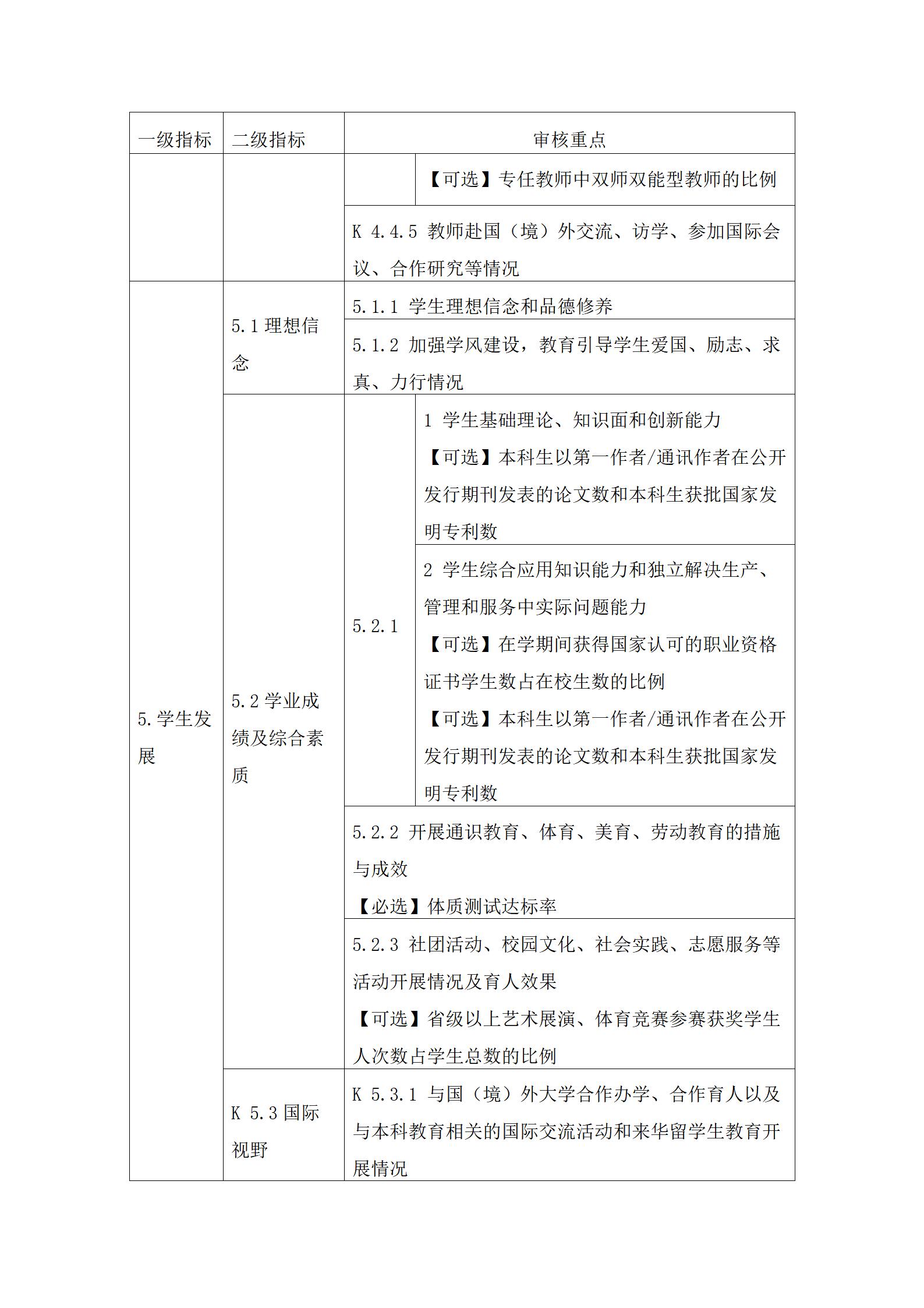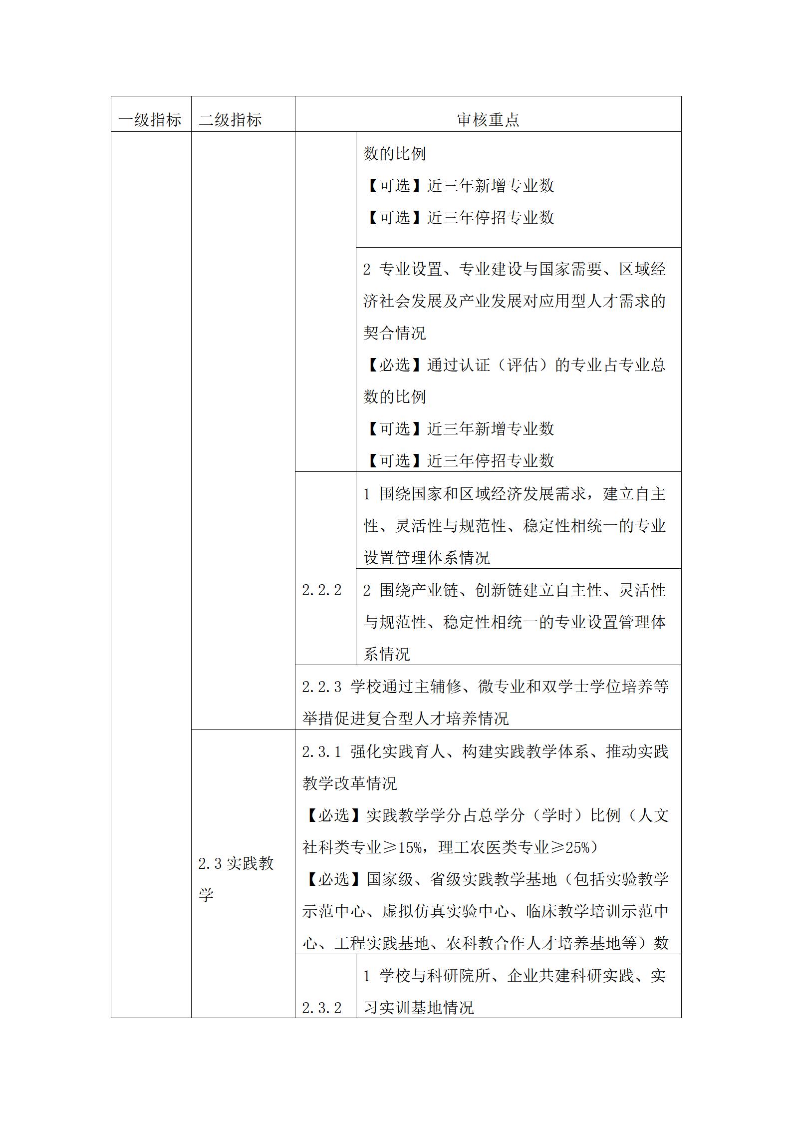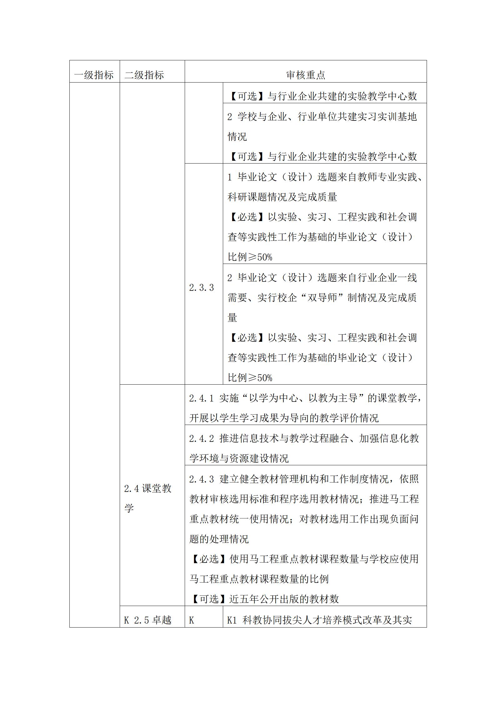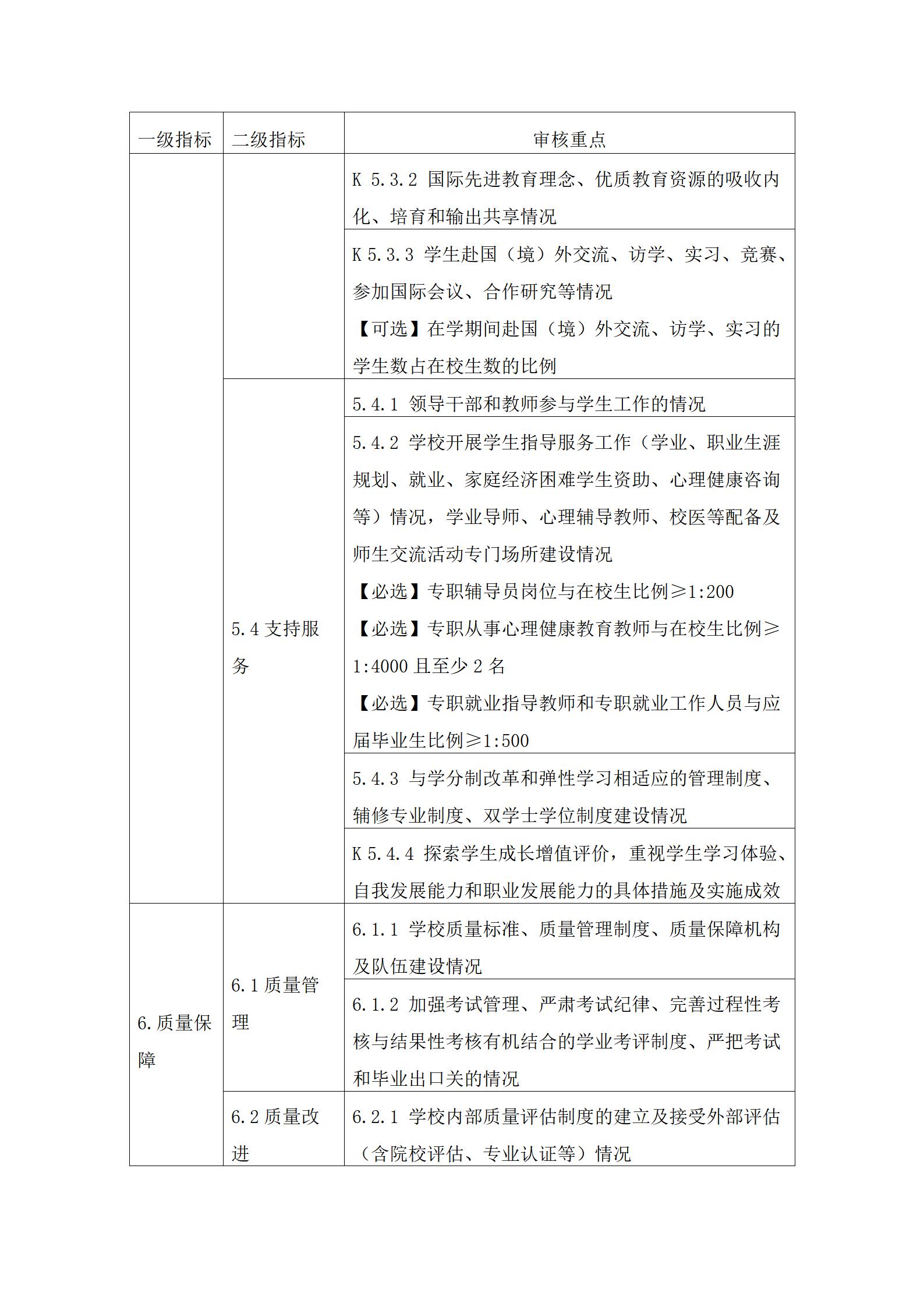 3.审核重点中定量指标的具体要求可参考国家相关标准。其中,【必选】是指该定量指标学校必须选择;【可选】是指该定量指标学校可根据自身发展需要和实际情况自主选择至少8项。