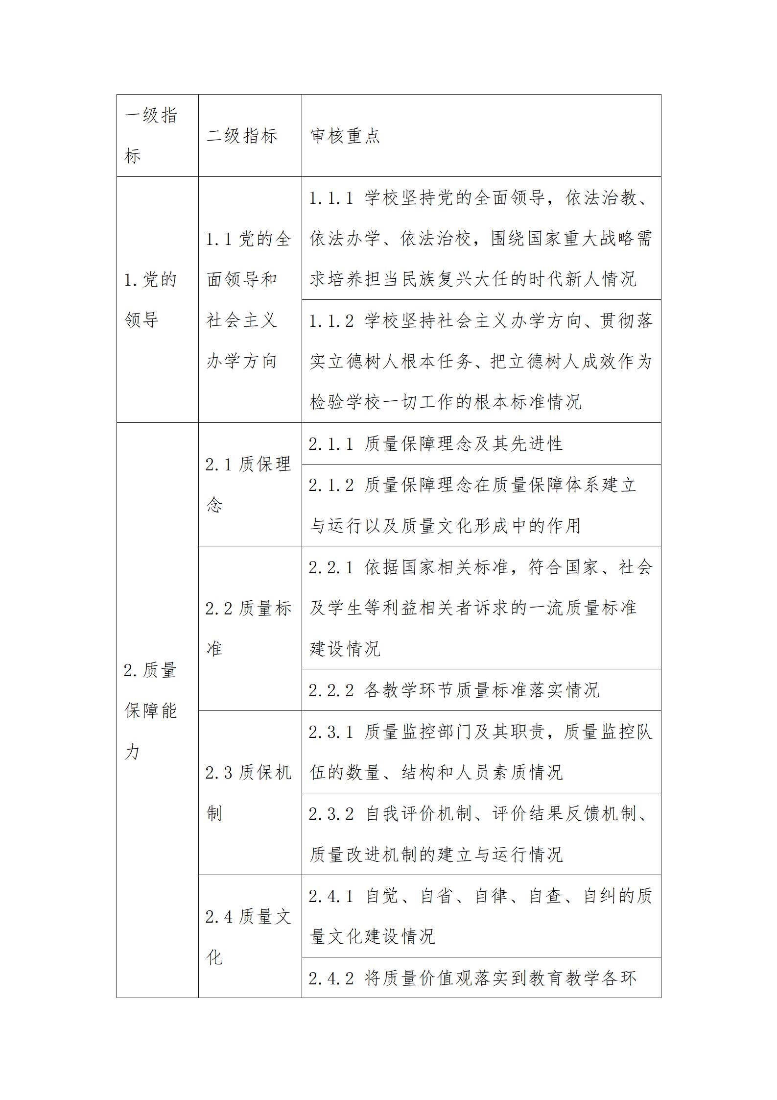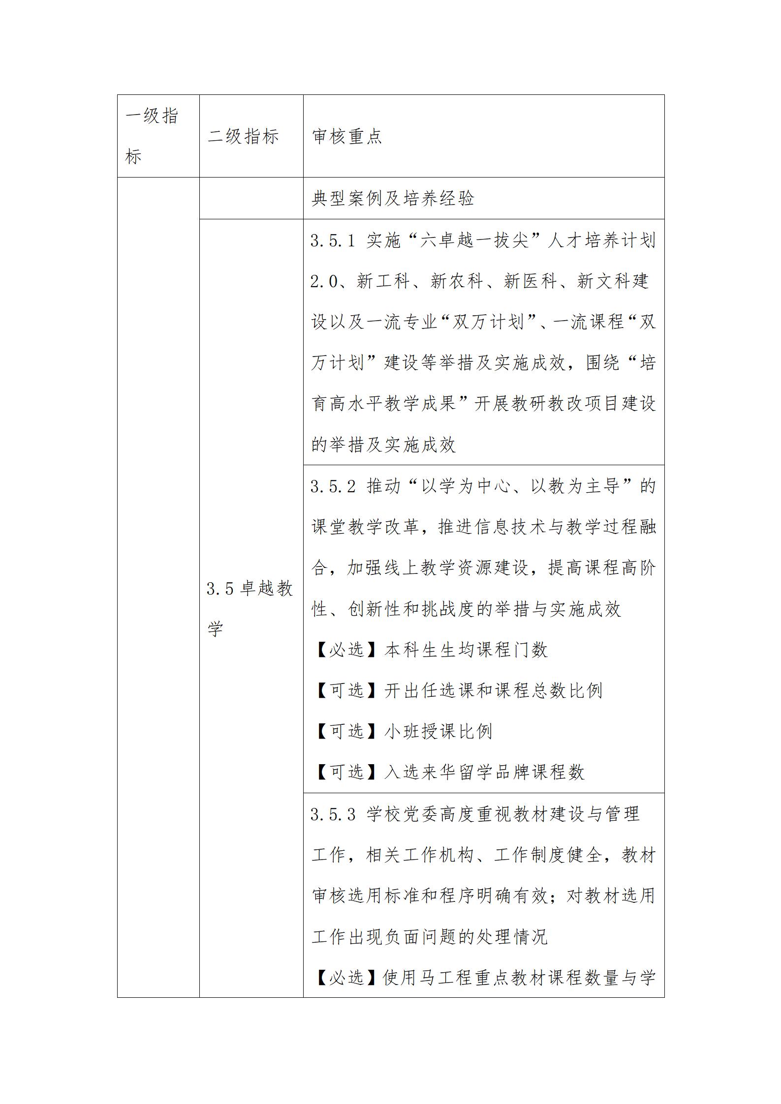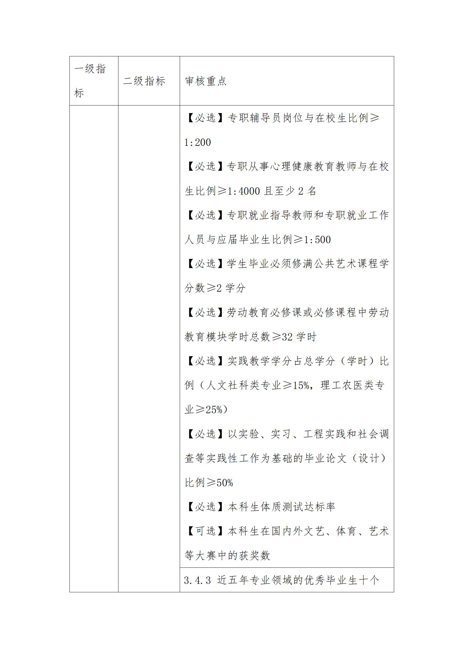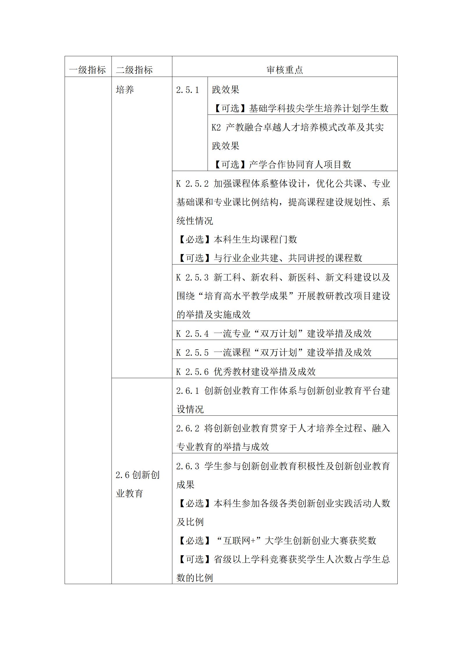 3.审核重点中定量指标的具体要求可参考国家相关标准。其中,【必选】是指该定量指标学校必须选择;【可选】是指该定量指标学校可根据自身发展需要和实际情况自主选择至少8项。