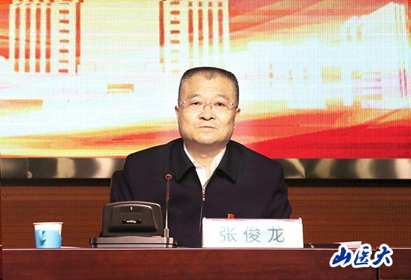 张俊龙强调,全校上下要按照习近平总书记的重要指示精神,把“严”的主基调长期坚持下去,以全面从严治党新成效加快推进学校事业高质量发展。要坚持思想从严,理想信念发条拧得再紧一点,夯实不忘初心、牢记使命的思想根基;要坚持履责从严,管党治党责任压得再实一点,进一步在标准上严格起来、在内容上系统起来、在措施上完善起来、在环节上衔接起来,形成强大势能;要坚持制度从严,体制机制笼子扎得再紧一点,用严明的纪律维护制度权威、保障制度执行,持续拧紧锁牢制度执行的“螺丝钉”;要坚持表率从严,引领作用发挥得再充分一点,做严于律己、严抓严管的带头人,带头锤炼忠诚干净担当的政治品格,发挥好以上率下的示范作用;要坚持监督从严,反腐利剑磨得再锋利一点,深化学校纪检监察体制机制改革和机构改革,构建一体推进不敢腐、不能腐、不想腐体制机制,巩固和发展反腐败斗争压倒性胜利,为高水平研究教学型医科大学建设提供坚强的政治保障和纪律保障。