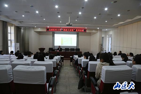 10月16日下午,山西日报报业集团编委、山西日报理论评论部主任、山西省中国特色社会主义理论体系研究中心研究员、山西省高校思想政治理论课特聘教授胡羽应邀在万象城明德楼一层学术报告厅作了以“理论如何接地气”为主题的学术讲座。本次讲座由马克思主义学院、党委宣传部、思想政治工作创新发展研究中心、教师德育素质拓展中心联合举办。校党委副书记贺培凤出席会议。马克思主义学院、党委宣传部等院系部门工作人员以及相关从事思想政治工作和理论研究的师生聆听了讲座。讲座由马克思主义学院院长苏果云主持。
