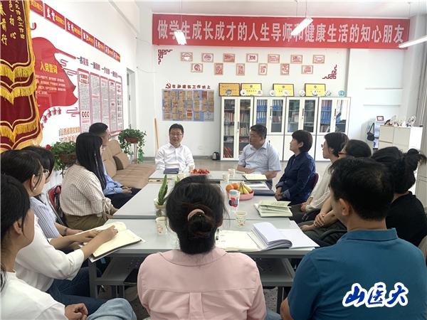 会上,王军仔细询问了思想政治辅导员在工作中有没有什么困难,个人职业生涯发展是否遇到什么问题,生活方面住房情况如何,子女上学方不方便等等。座谈中,王军深情回望了个人的团学工作历程,以生动的工作事例深深感染和启迪大家:要以一颗赤诚之心热爱团学工作,以不畏艰难的勇气破难克难,做学生的贴心人和人生导师,做山医最一线的纽带和代言人。