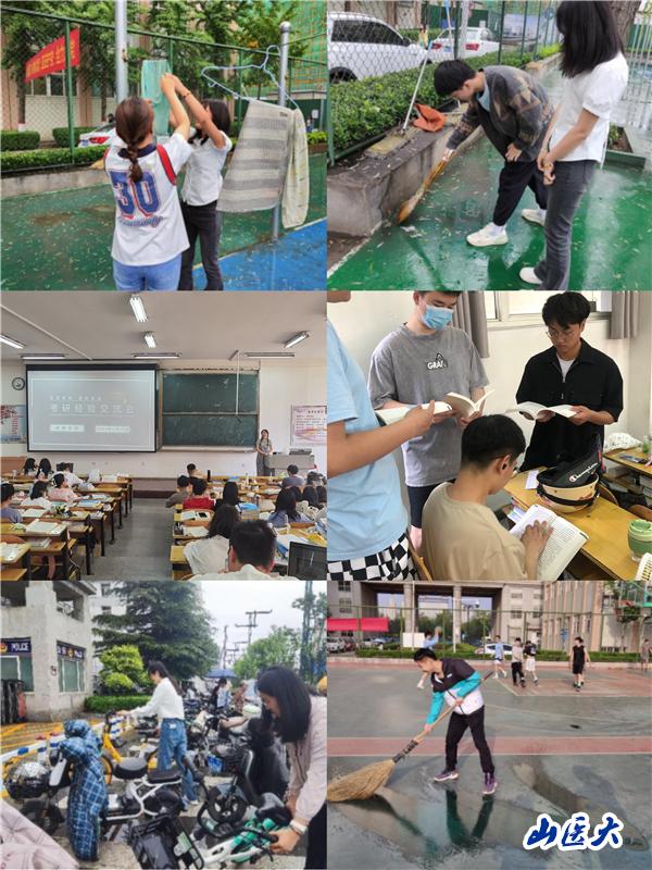 做好身边小事,主动开展志愿服务。学生党员们利用医学专业背景积极参加社区义诊活动、在解放南路迎泽校区东门开展“共享单车随手扶”活动、在迎泽校区C座教学楼进行了卫生清扫工作、扫开迎泽校区篮球场积水、清理公园步行道旁边、学校旁边街道的垃圾、打扫学生宿舍卫生等,为美化校园环境和服务社会贡献了自己的力量。