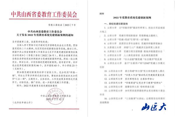 近日,省委教育工委公布2022年度教育系统党建创新案例评选结果,万象城三个党建案例入选全省高校党建创新案例,分别是:第一临床医学院(第一医院)检验输血党支部的《坚定理想信念,永葆医学初心》,机关党委的《“四度工作法”推动机关党建高质量发展》,基础医学院本科生第一党支部的《“四维课堂”让党史学习教育“别样红”》。